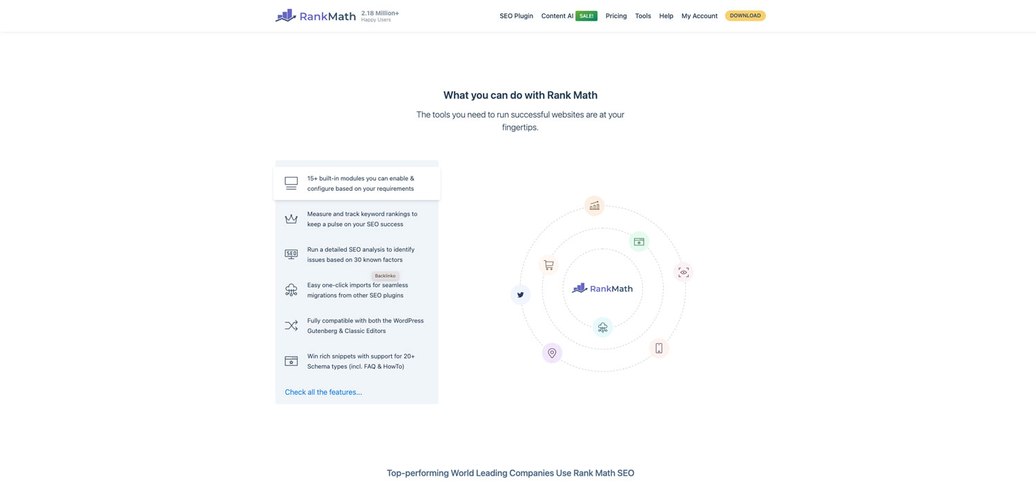 1. 用户友好的界面:Rank Math具有直观的用户界面,使新手和经验丰富的用户都能轻松使用。您不需要成为SEO专家即可从中受益。