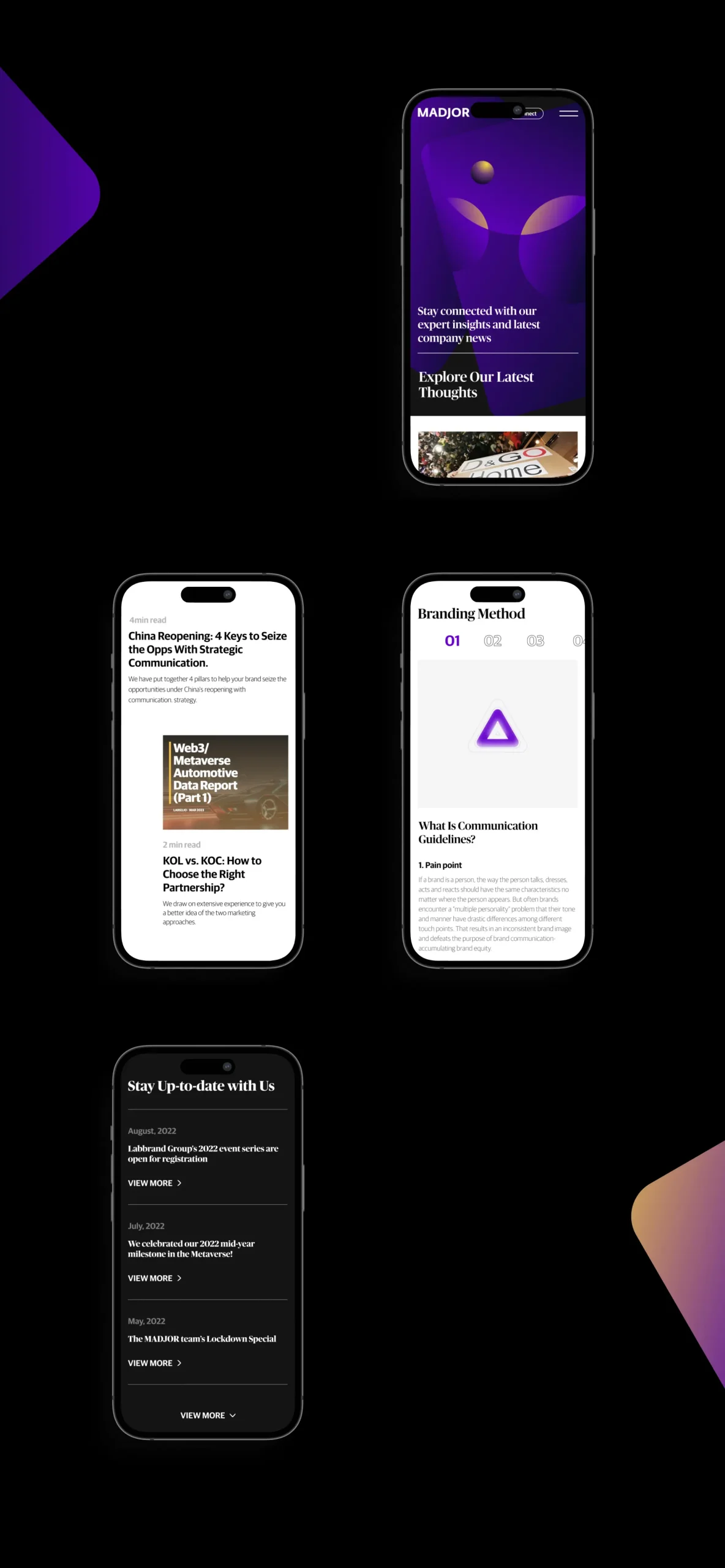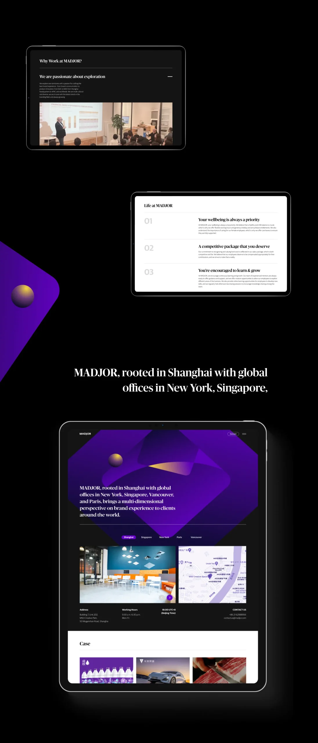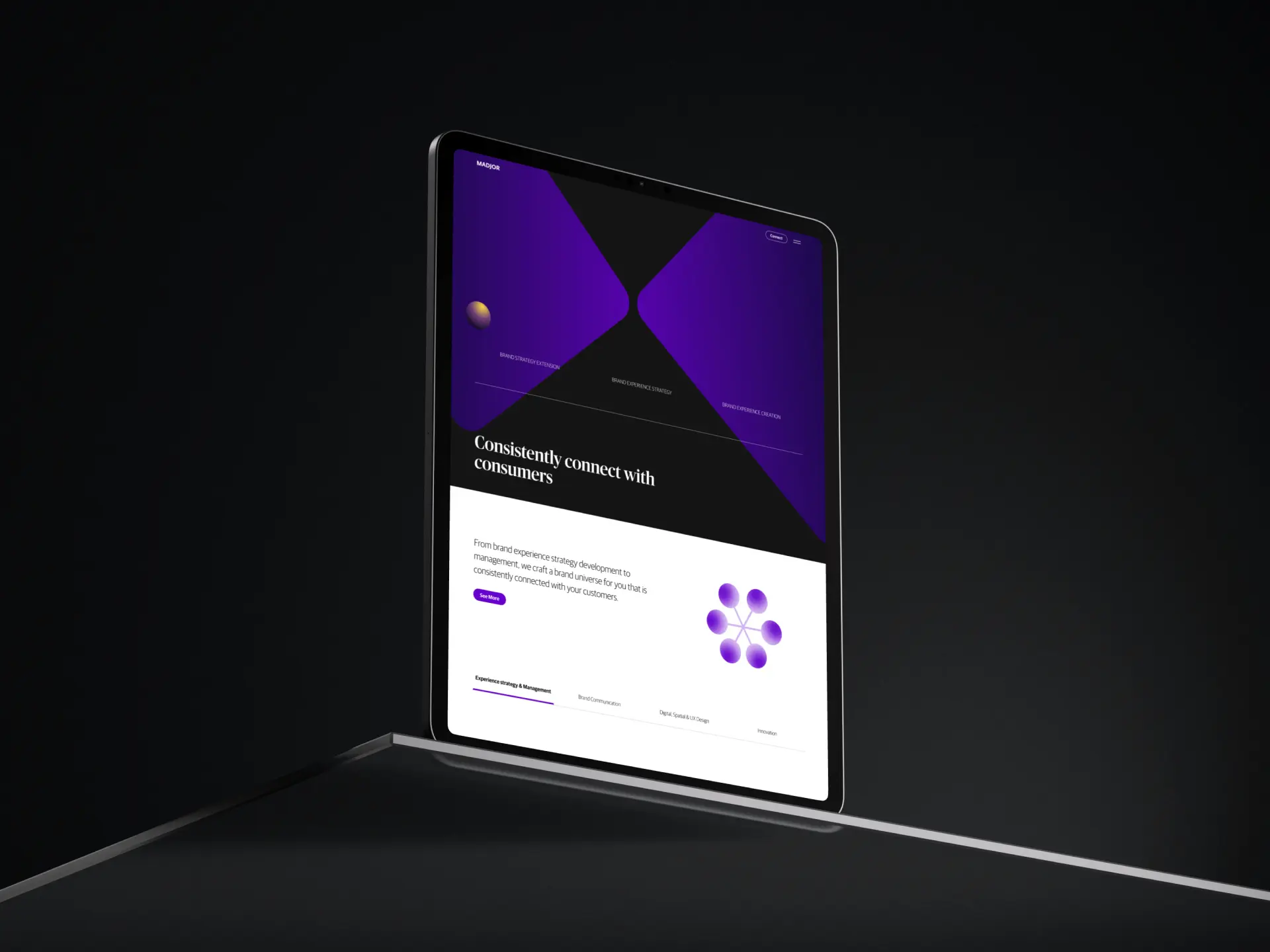 我们为Madjor打造了一个交互体验极佳的品牌网站,突出展示了他们在品牌体验咨询领域的专业知识和独特交互方式。我们为Madjor创立完整的交互与视觉,从电脑端到手机端都提供了绝佳的用户体验,让客户和潜在合作伙伴更深入地了解Madjor所提供的服务。通过这次合作,我们成功地为Madjor树立了更清晰的品牌定位,期待未来他们在品牌体验领域取得更多新的高度。